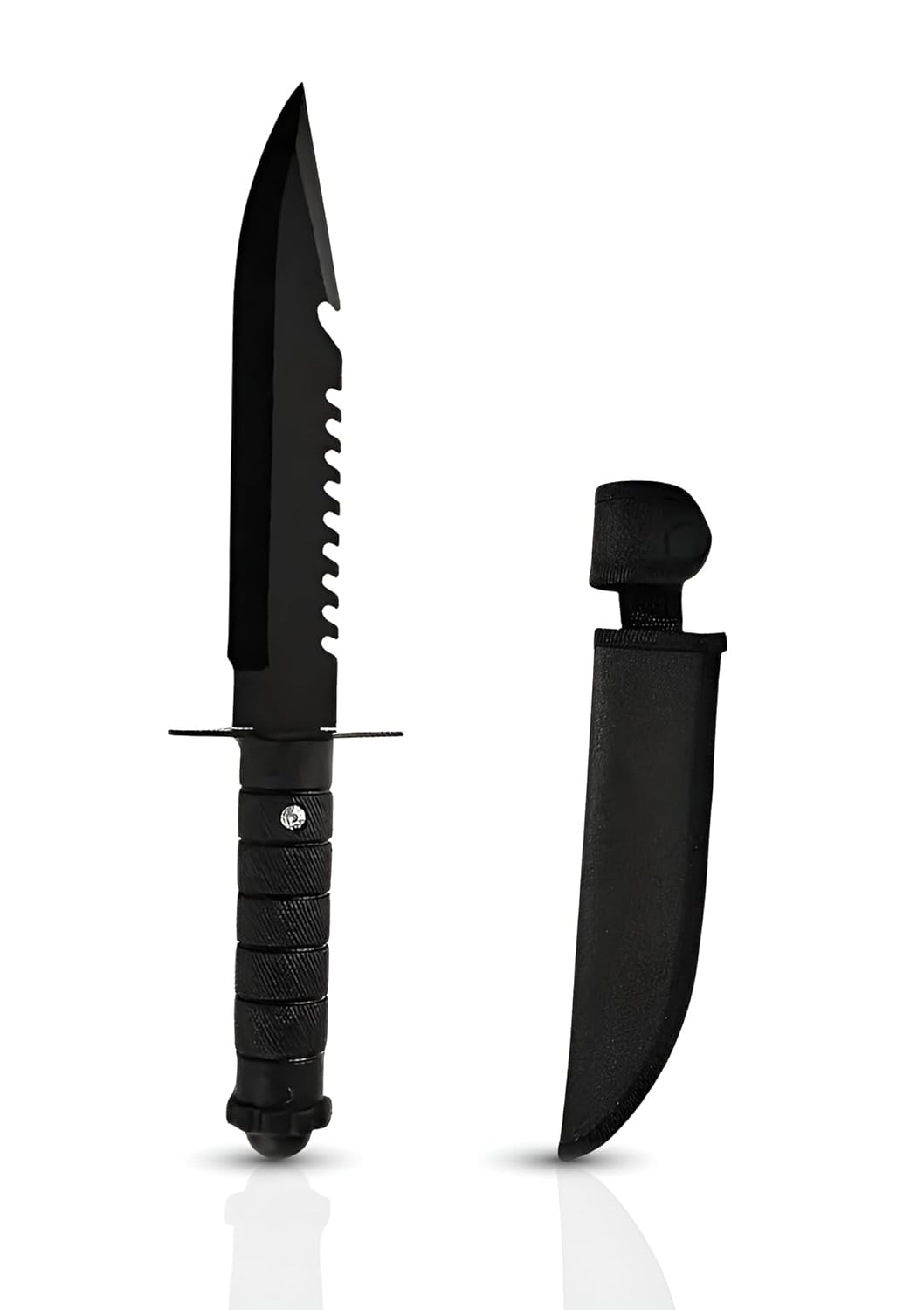 🔪 PREMIUM BLACK STAINLESS STEEL: Crafted from high-grade, corrosion-resistant stainless steel with a sleek matte black finish. This knife features a razor-sharp edge for precision cutting and a serrated spine (saw-back) for rugged outdoor utility tasks like cutting rope or small branches.