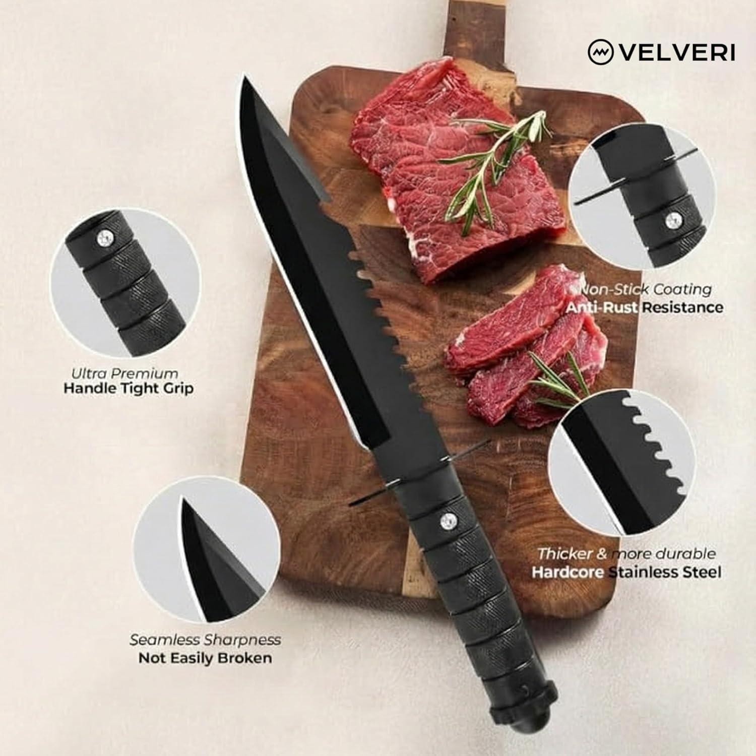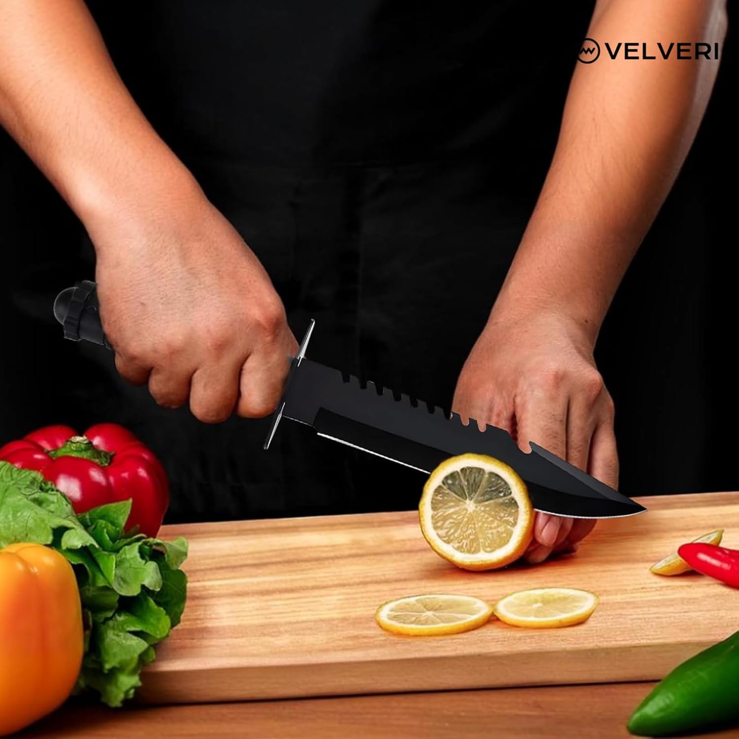 Be the first to review “Utility Long Knife with Protective Cover | Premium Stainless Steel Black Knife for Kitchen Utility, Fruits, Vegetables, Meat | Portable Travel Essential for Home, Outdoor, Hiking, Tracking, Camping”