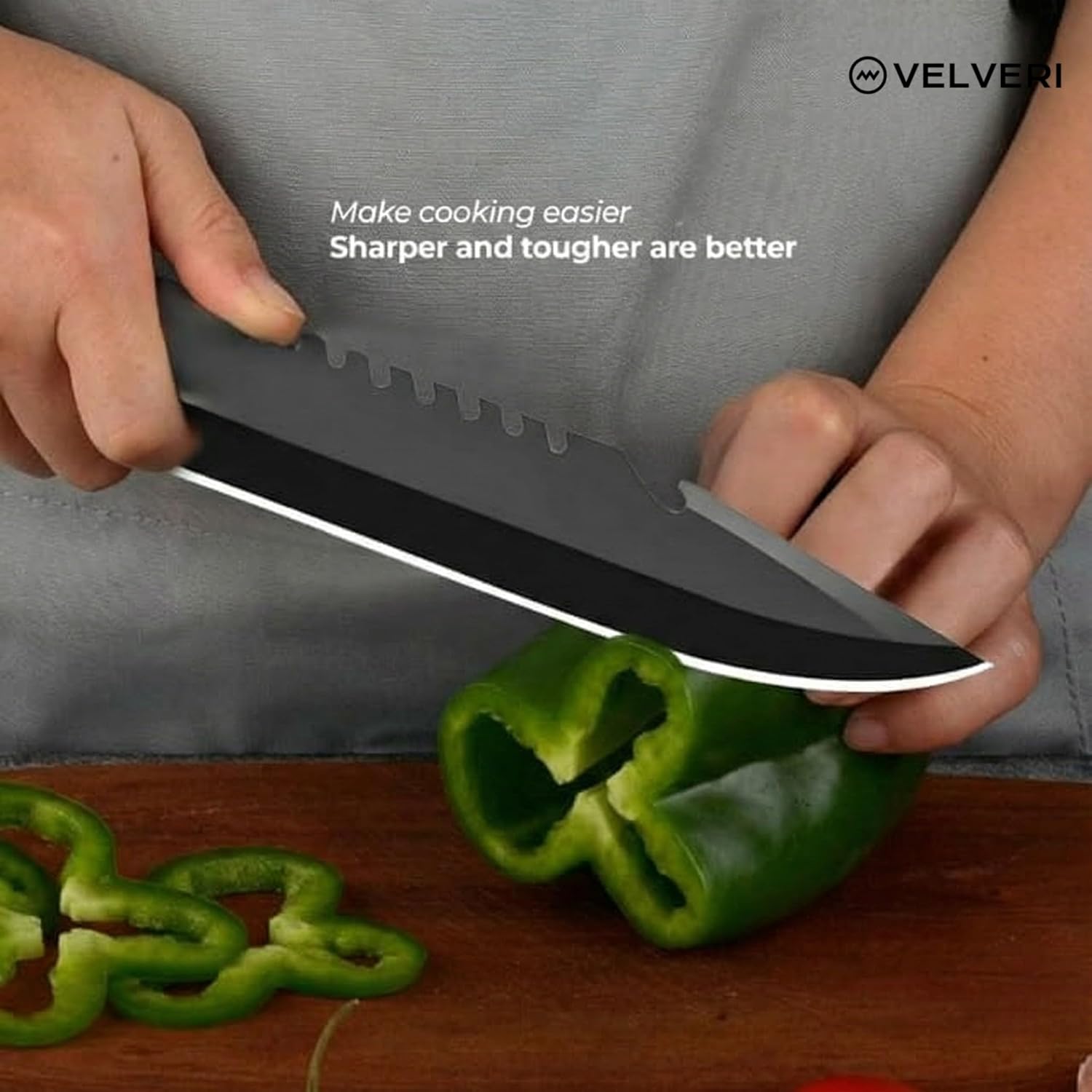Utility Long Knife with Protective Cover | Premium Stainless Steel Black Knife for Kitchen Utility, Fruits, Vegetables, Meat | Portable Travel Essential for Home, Outdoor, Hiking, Tracking, Camping