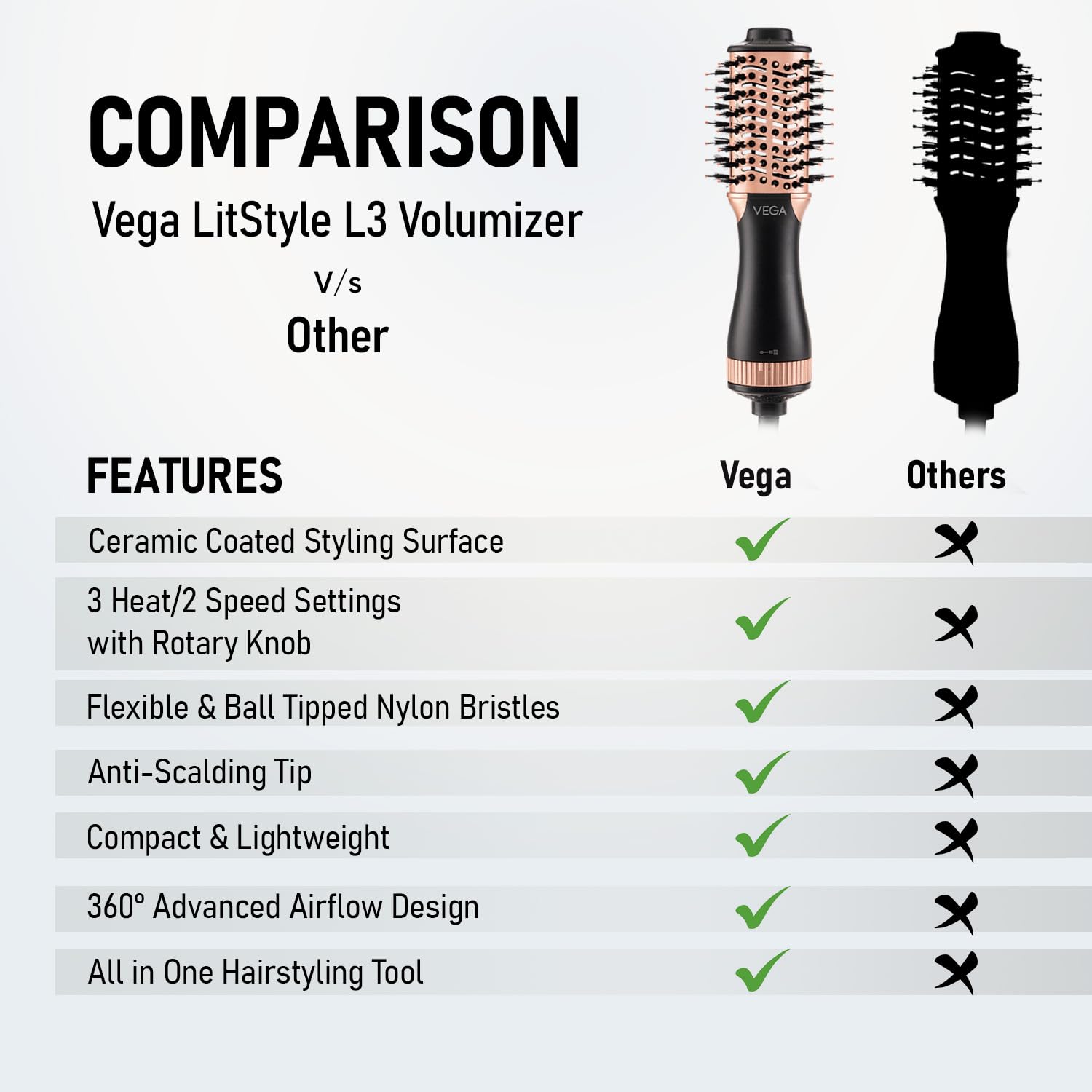 Be the first to review “VEGA Litstyle L3 Volumizer Hair Blow Dryer Brush With 3 Heat/2 Speed Settings, 360° Airflow Vent, 3 in 1 Compact Hot Air Brush For Women, Tourmaline Ceramic Coated Barrel, 500 Watts, (VHSD-03)”