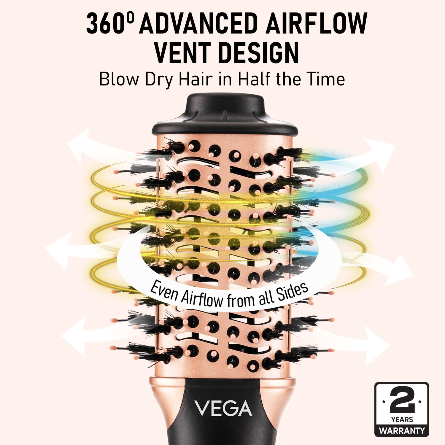 360° ADVANCED AIRFLOW VENT DESIGN: Unique vent system that distributes airflow evenly from all sides, reducing hair drying and styling time by half while ensuring uniform results in just one step across every strand.