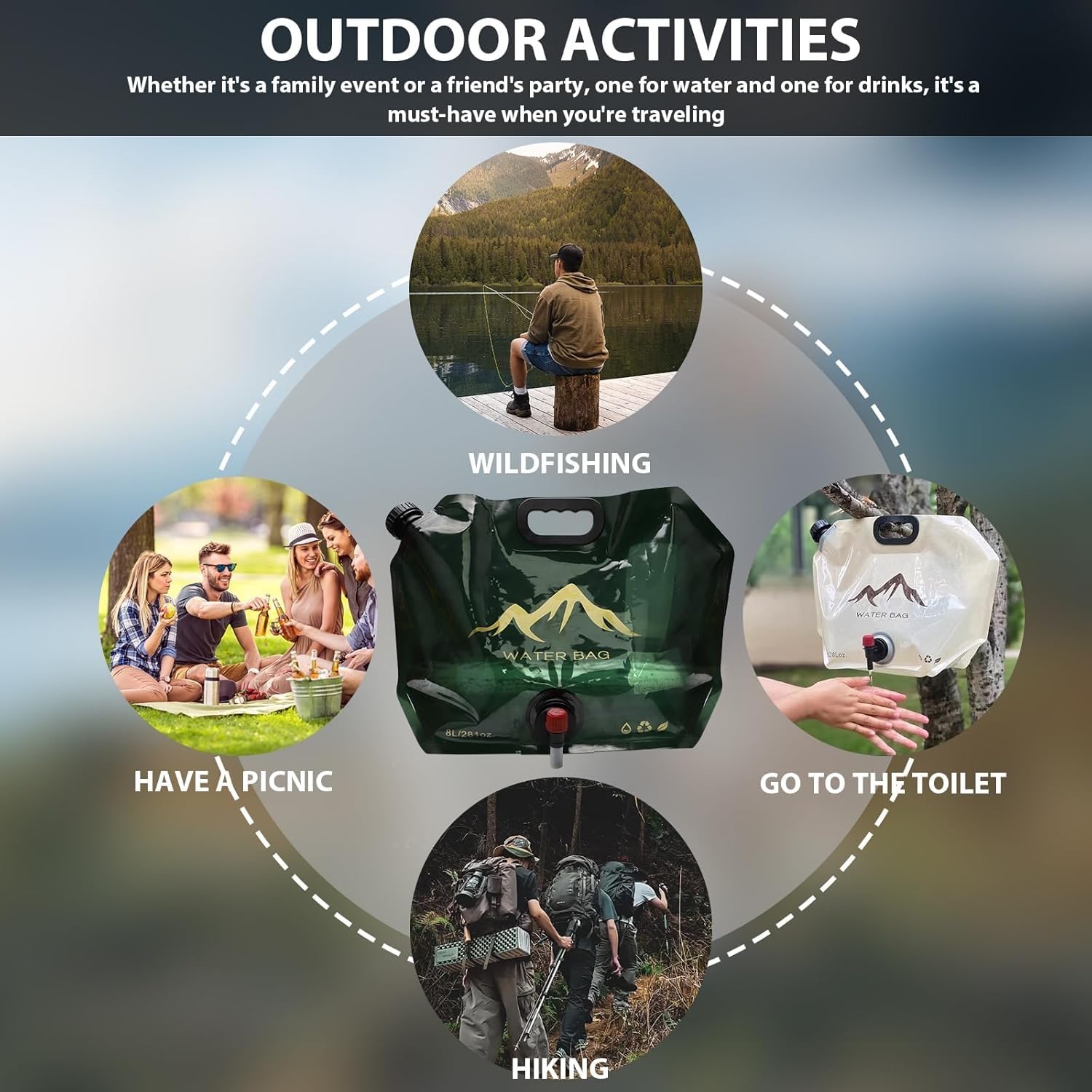 Collapsible Design: This camping water container bag can be folded and put into a backpack without taking up space, lightweight and the handle is designed for easy gripping and carrying; collapsible water containers are perfect for camping, hiking, traveling, and other outdoor activities
