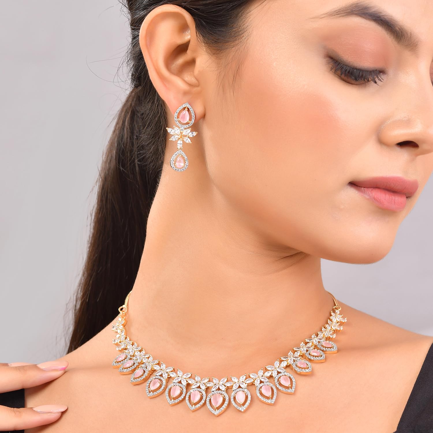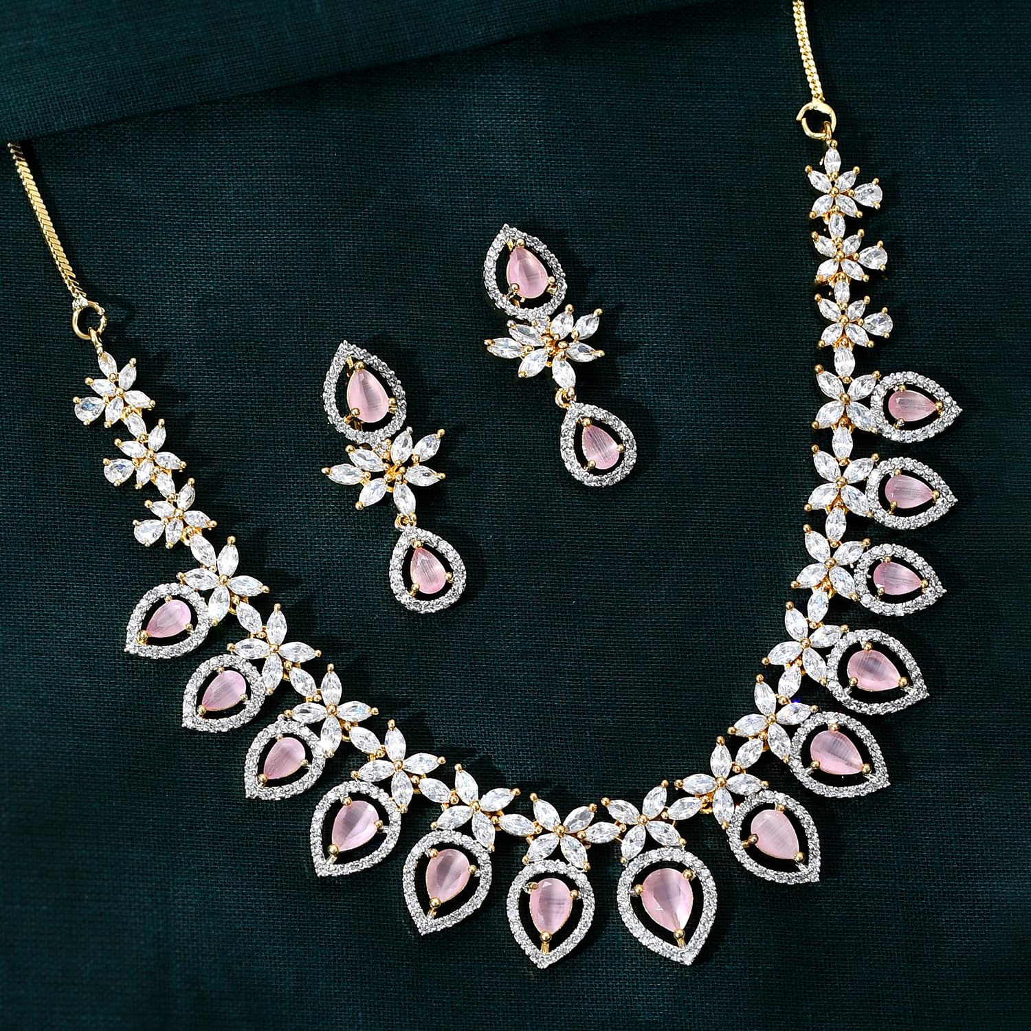 Be the first to review “VOYLLA Sparkling Elegance Timeless Luxury Pink American Diamond Necklace Set |Necklace Sets For Women| Short Necklace Set For Women|Wedding|Party|Gift For Women|American Diamond|Cz Necklace Sets|”