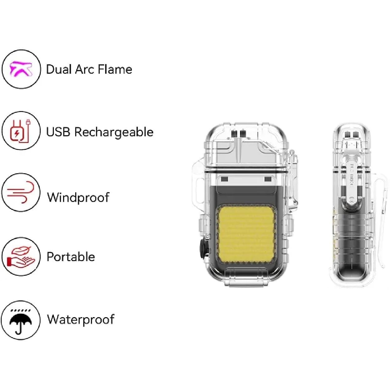 Be the first to review “Waterproof LED Flashlight Plasma Lighter | USB Rechargeable Keychain Torch | Windproof Flameless Mini Lantern for Outdoor, Camping, Hiking, Survival | Transparent Multi-Utility Pocket Light”
