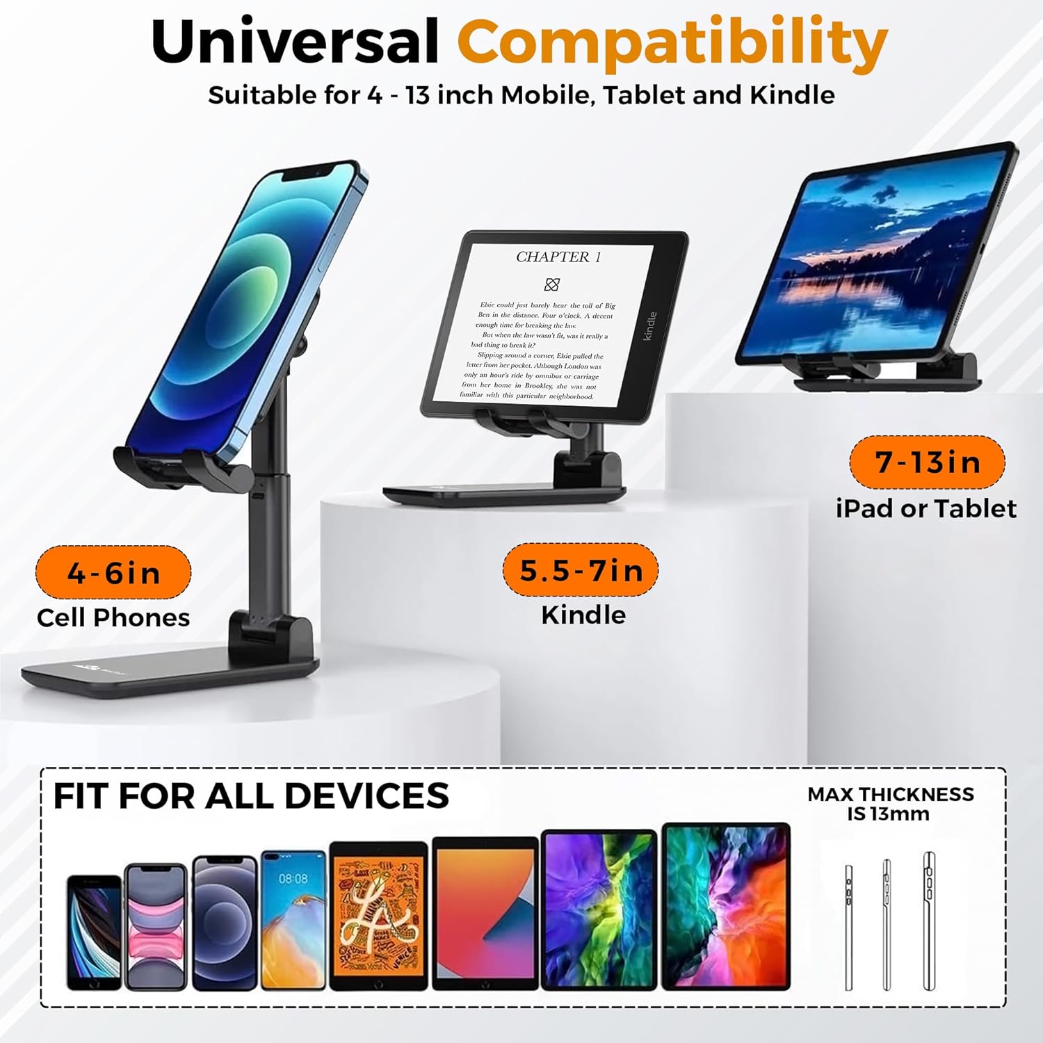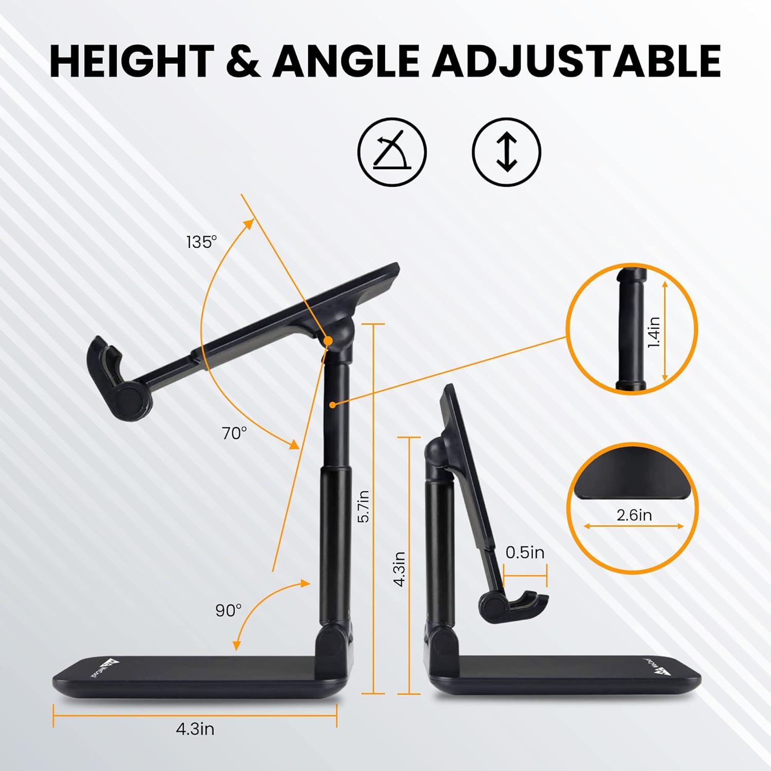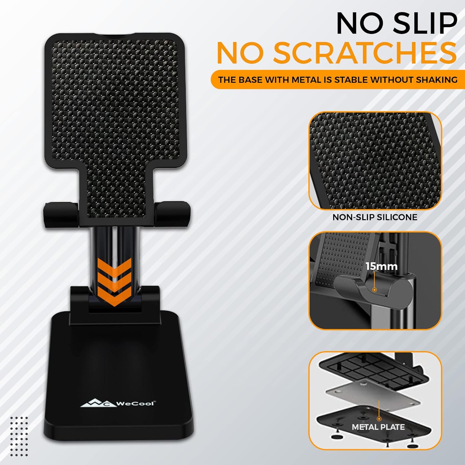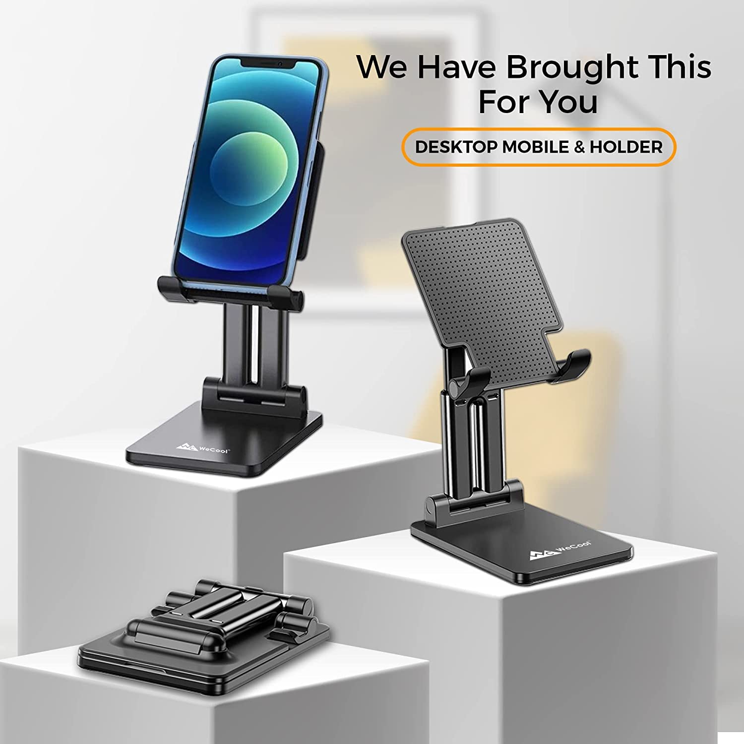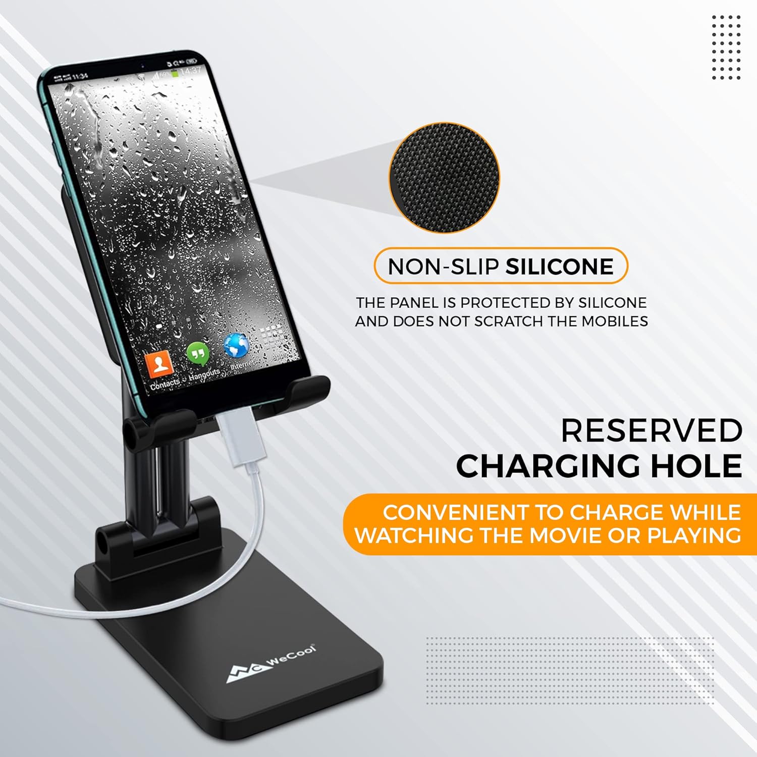 WeCool T2 Foldable and Portable Tabletop Mobile Stand with Stable Base,Height and View Angle Adjustable Phone Stand,Ideal Mobile Holder for Smartphones,Tablets, Kindles