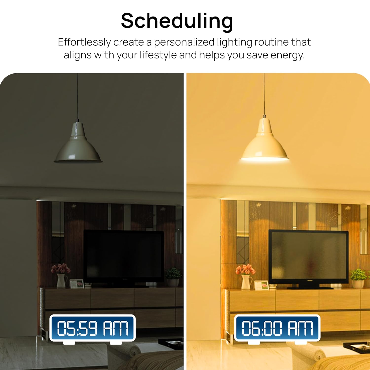 Schedule & Scene Creation: Set Schedules to turn the light ON/OFF automatically & create scenes as per your convenience
