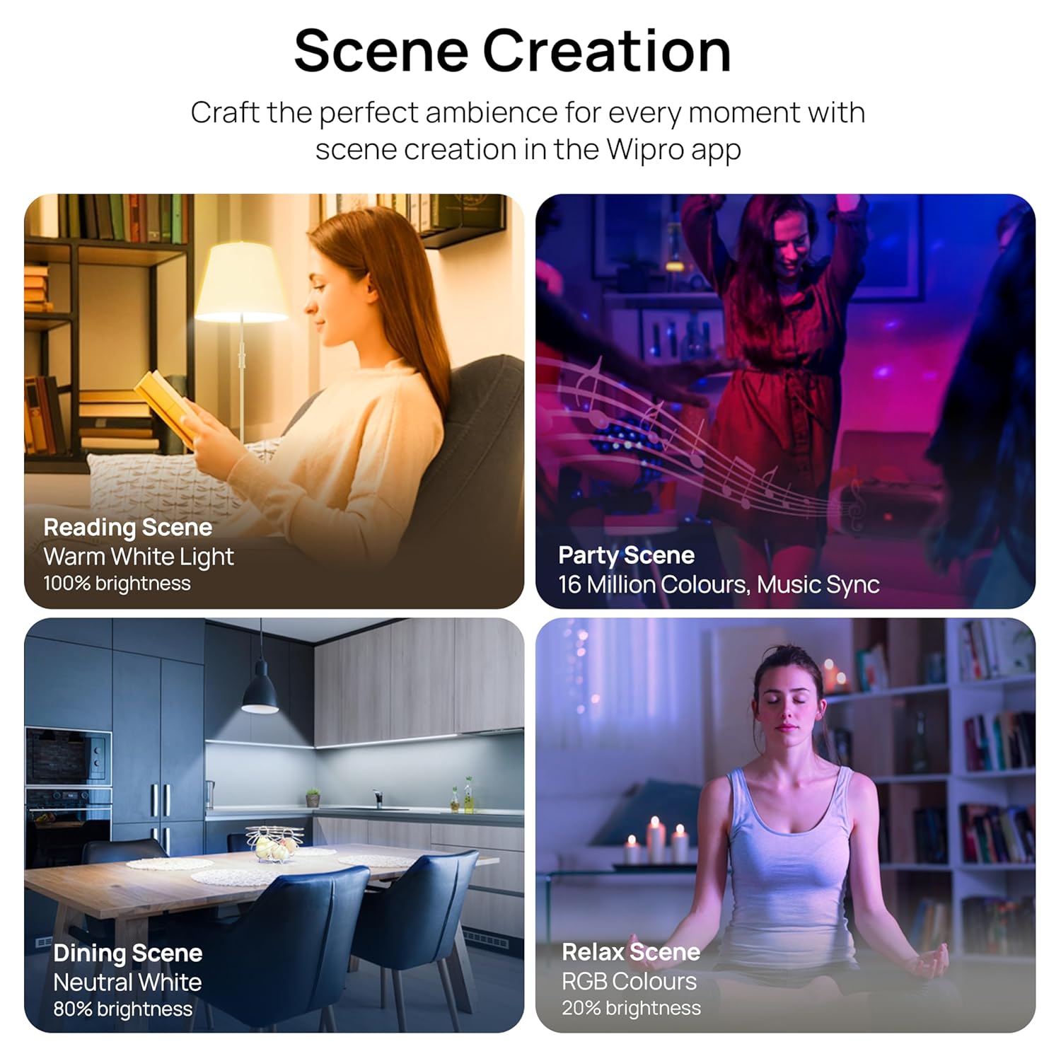 16 Million Dynamic Colours & White Tunable: Create vibrant ambience with 16 mn dynamic colours for parties, festivals or a movie night. Tune your light to different shades of White. Change the light between Warm White (2700K) to relax & Cool White (6500K) for work as per requirement