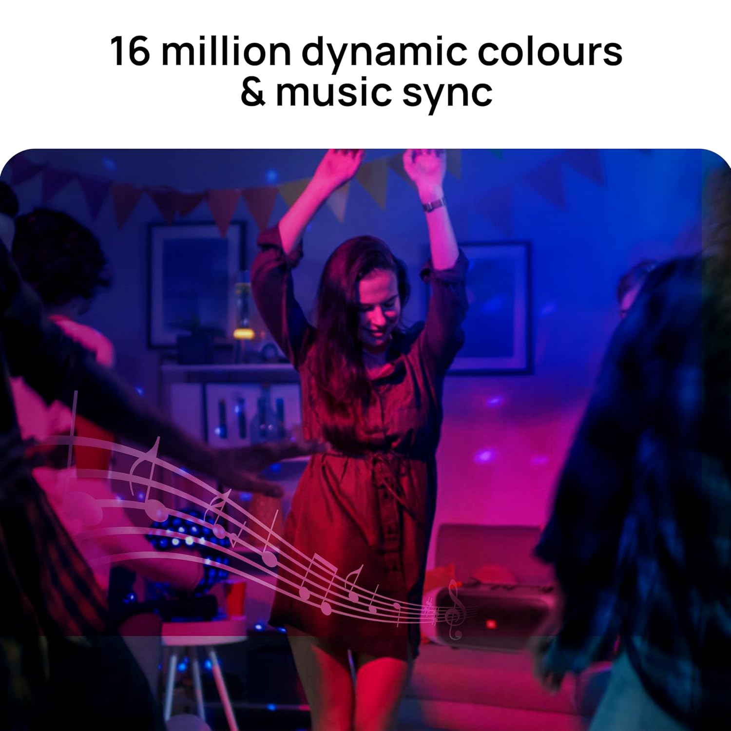Music Sync: Let the light dance by changing colours of the light with the beats of your music, enhancing your ambience