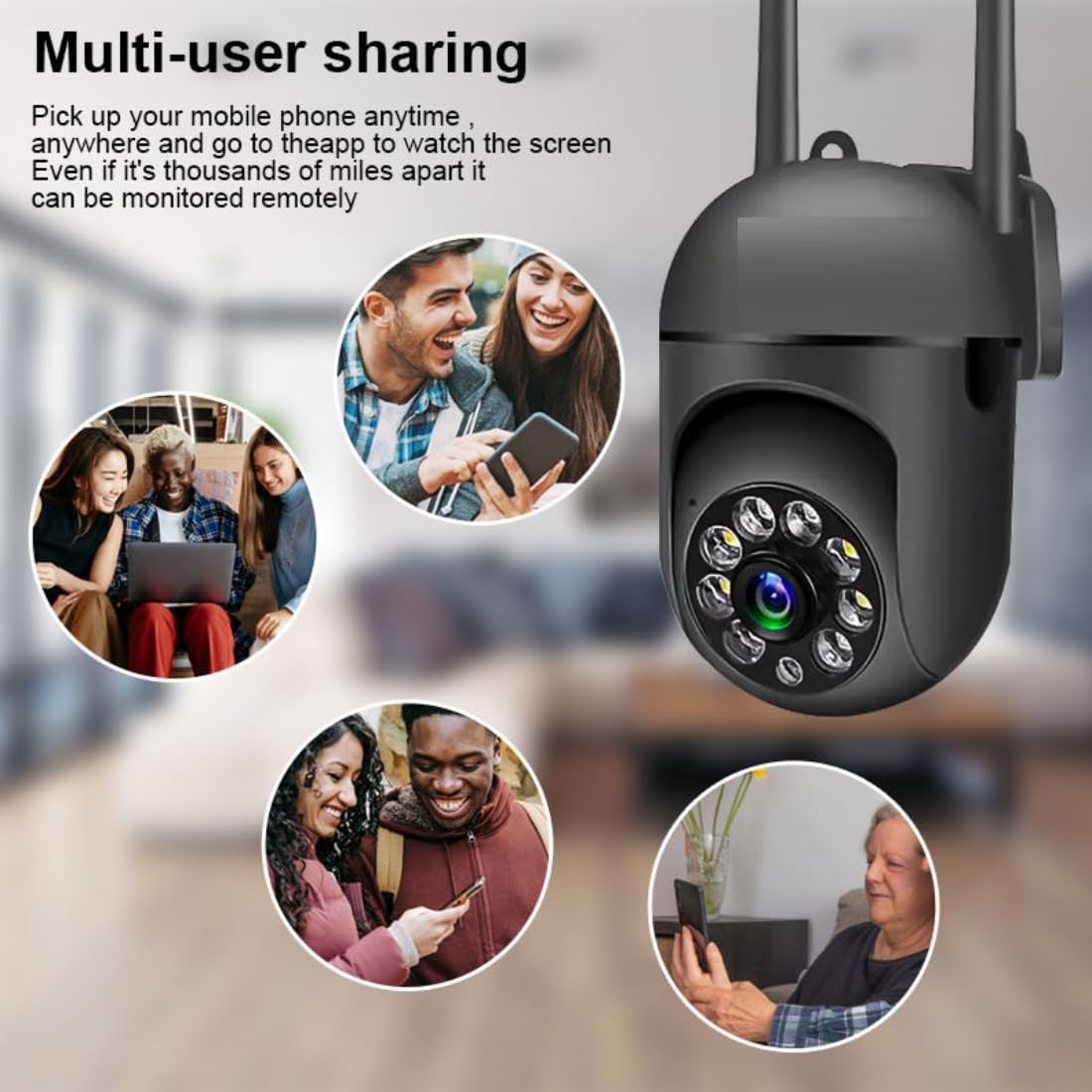 Enhance your home security with this advanced 1080P HD outdoor WiFi surveillance camera. Featuring dual antennas for stable connectivity and superior night vision capabilities, this camera ensures round-the-clock monitoring of your premises. The sleek black design houses a sophisticated array of 8 LED lights surrounding the main lens, providing excellent visibility even in low-light conditions. Access real-time footage and control your camera through the intuitive smartphone app, putting security management at your fingertips. The camera’s robust construction makes it suitable for outdoor installation, while its high-definition video quality ensures clear, detailed surveillance footage. Perfect for monitoring your home, office, or commercial space, this wireless security camera combines cutting-edge technology with user-friendly operation. The dual-antenna system strengthens the WiFi signal, reducing connection drops and ensuring consistent performance. Installation is straightforward, and the camera integrates seamlessly with your existing home security setup.