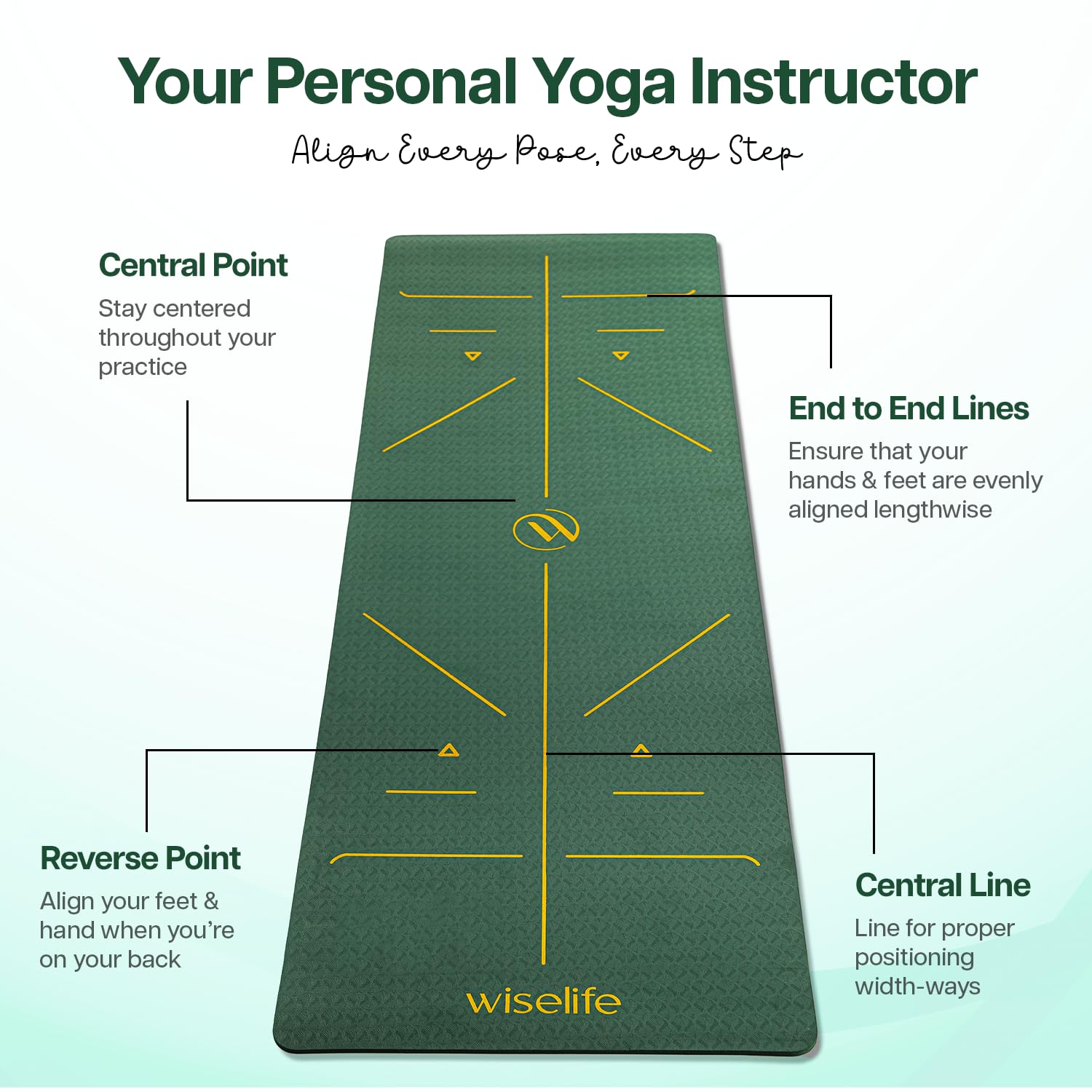 ALIGNMENT LINES: Guided alignment lines printed directly onto the mat for easy positioning and proper alignment during yoga practice.