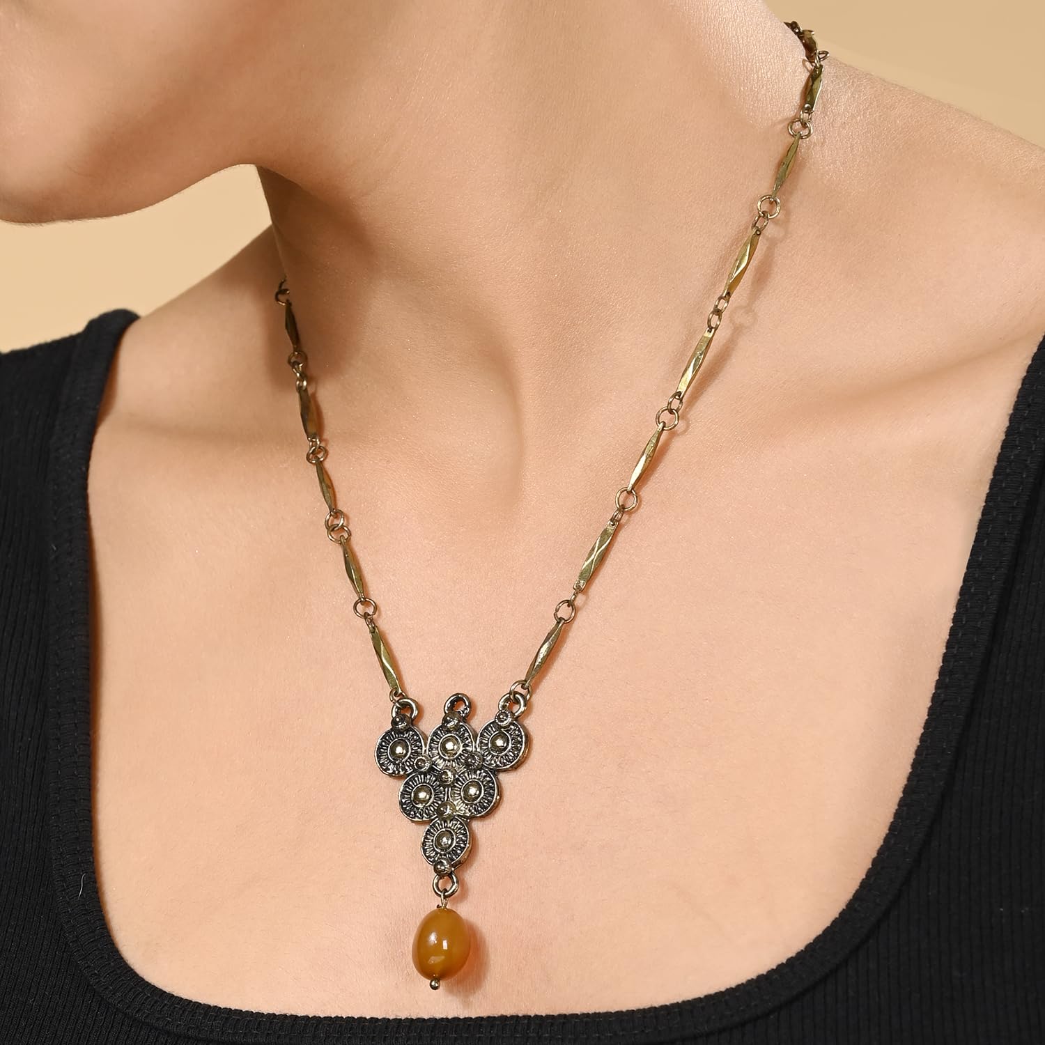 XPNSV Luxury Antique Gold Poslish Semi Precious Dangle Necklace Light Weight & Anti Tarnish Latest Fashion Jewellery For Women, Girls & Her