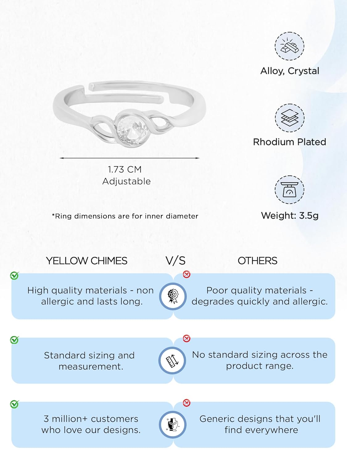 Be the first to review “Yellow Chimes Valentine Gift for Girls Rings For Women Adjustable Silver Ring with Velvet Red Rose Ring Box | Valentine Special Finger Ring for Girls | Birthday Anniversary Gift For Girlfriend Wife”