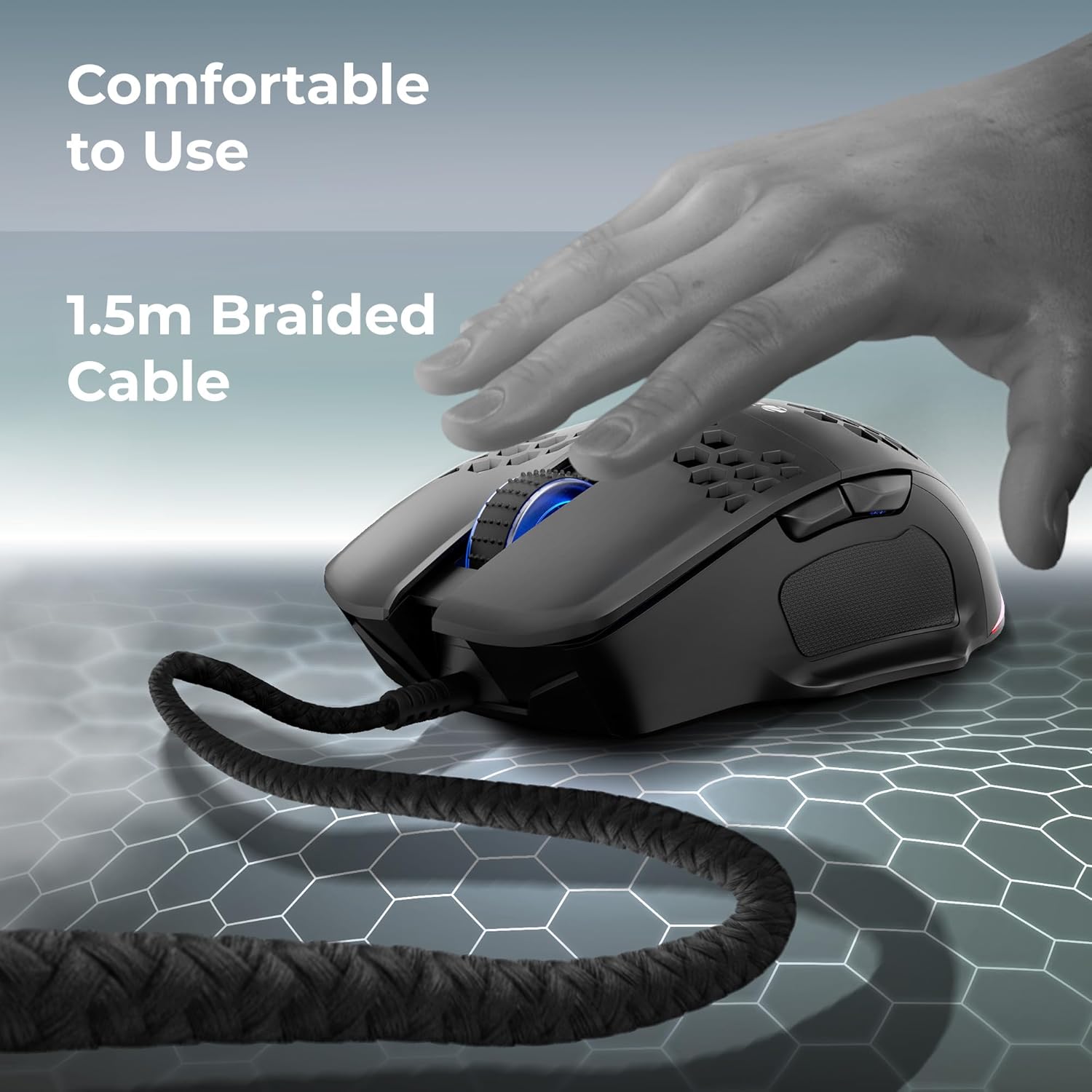 Adding a touch of colorful gaming atmosphere, this mouse comes with 10+ RGB LED light modes that emit vibrant colors and can be easily controlled by a dedicated button