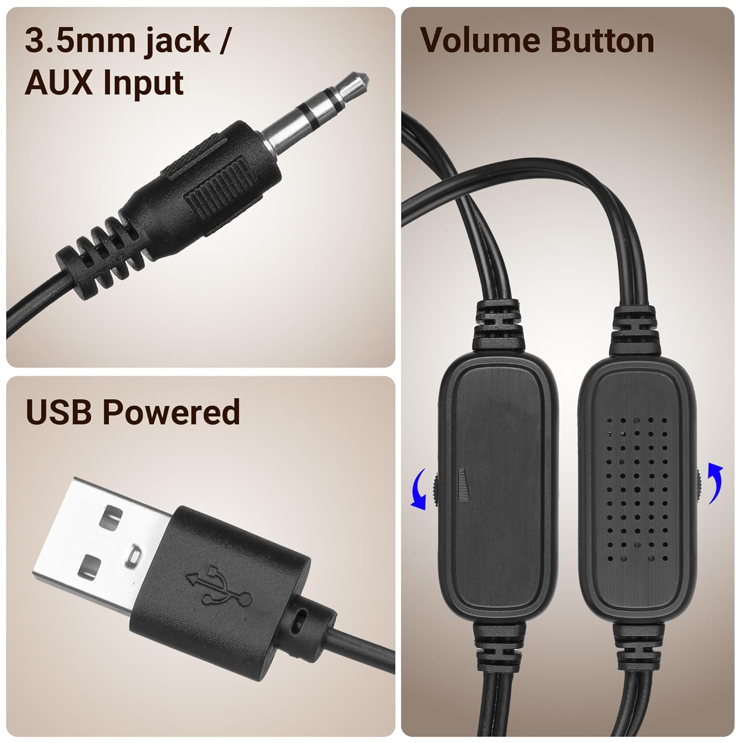 3.5mm line input: The speaker’s 3.5mm audio jack ensures effortless connectivity with computers, laptops, and other audio sources