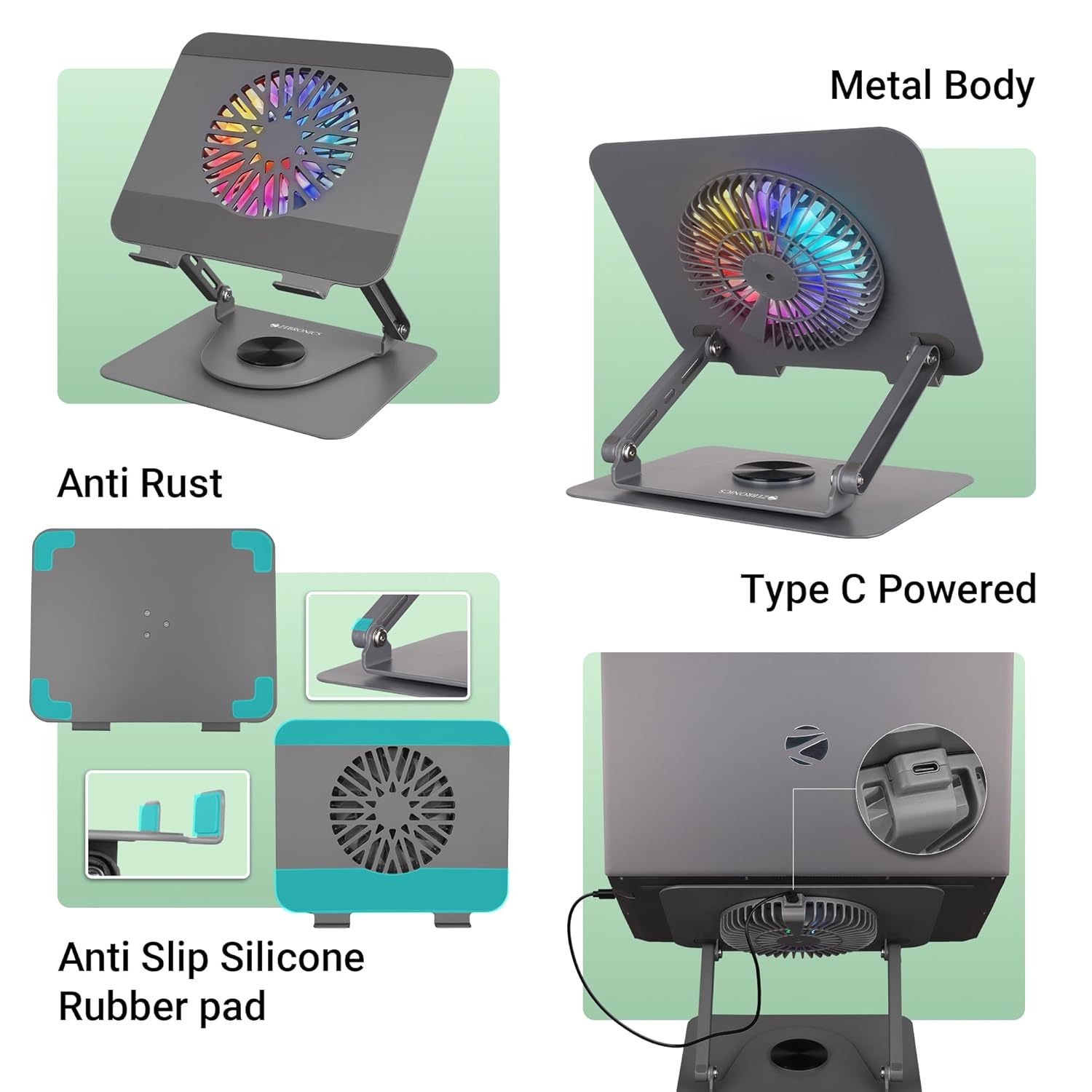 Be the first to review “ZEBRONICS NS4000 PRO Rotatable Laptop Metal Stand, Upto 17 inch, 360° Fidget Rotation, Foldable, Multi Angle Adjustment, Type C Detachable RGB Magnetic Fan, Anti-Slip Silicone Pads, Carbon Steel Body”