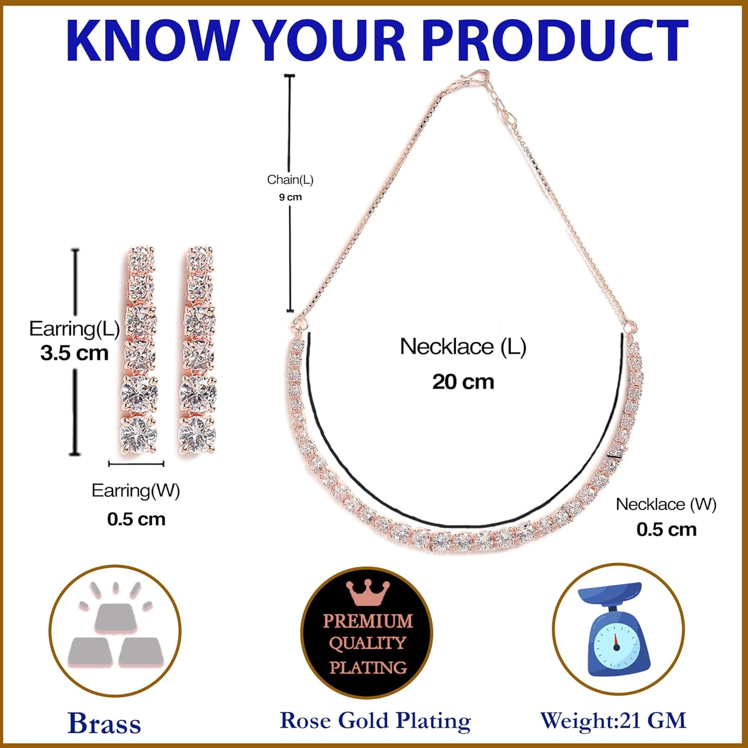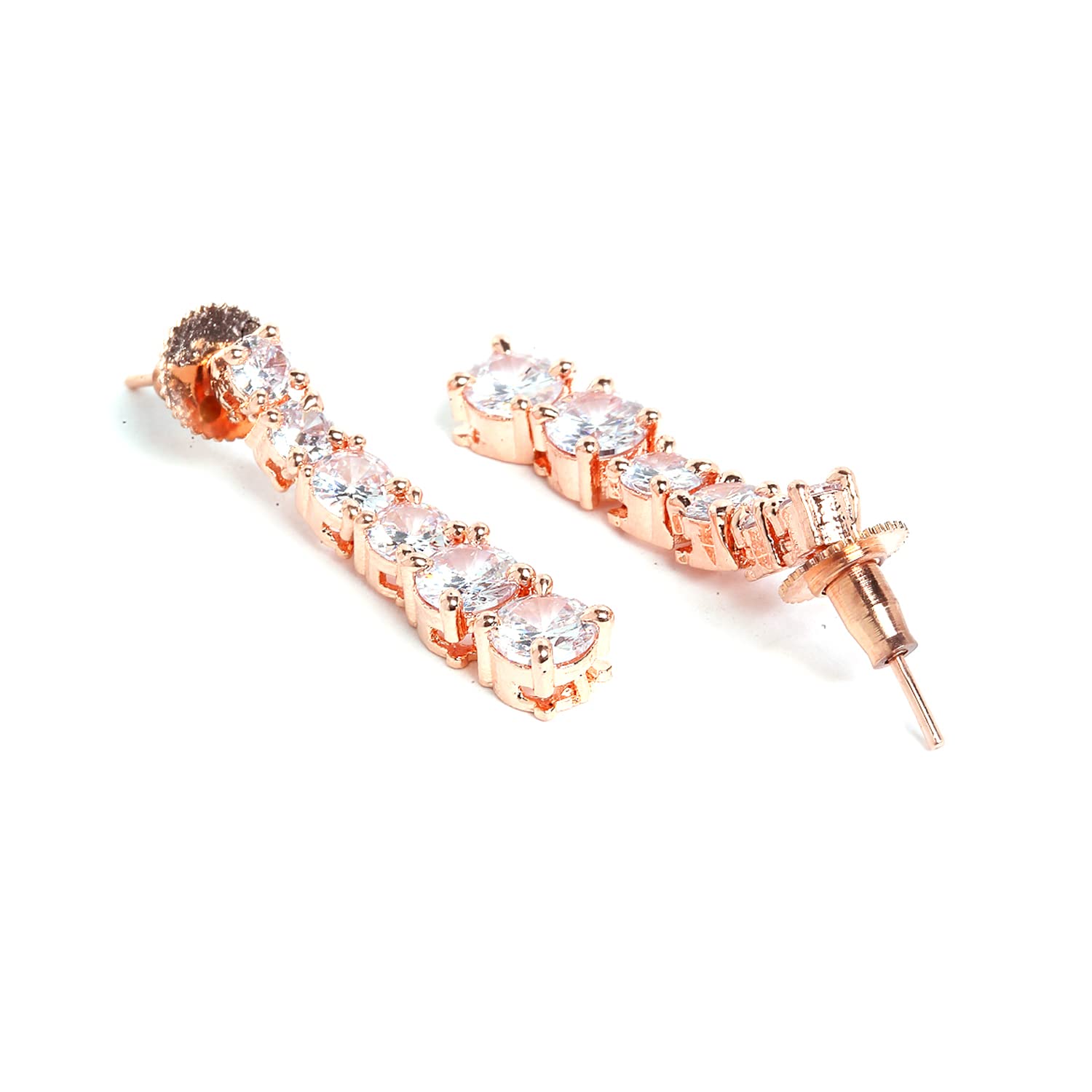 Generic Name : AD/American Diamond Studded Rose Gold Plated Necklace Jewellery Set
