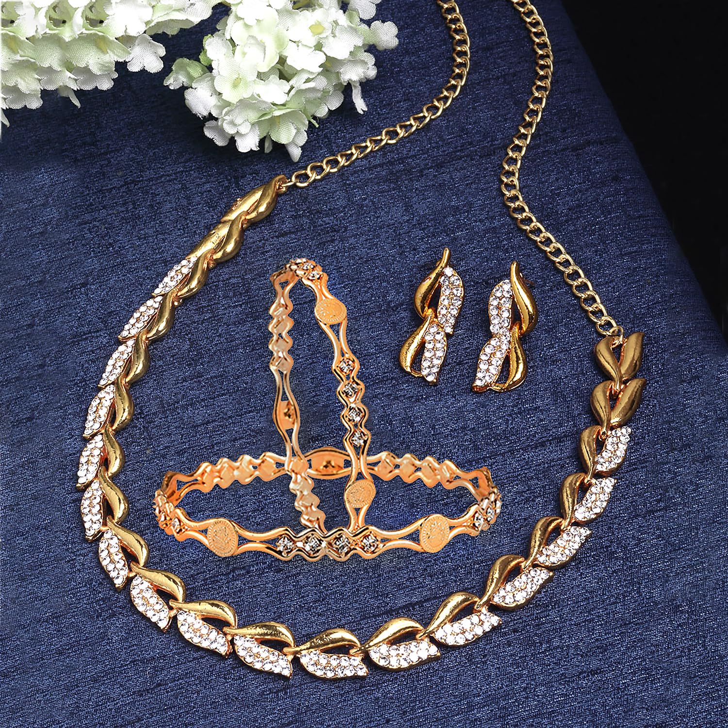 Be the first to review “ZENEME Non-precious Metal Gold Plated and American Diamond Necklace Set & Bangles for Women & Girls”