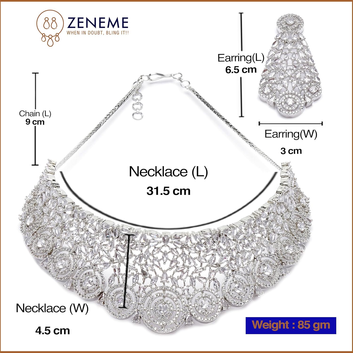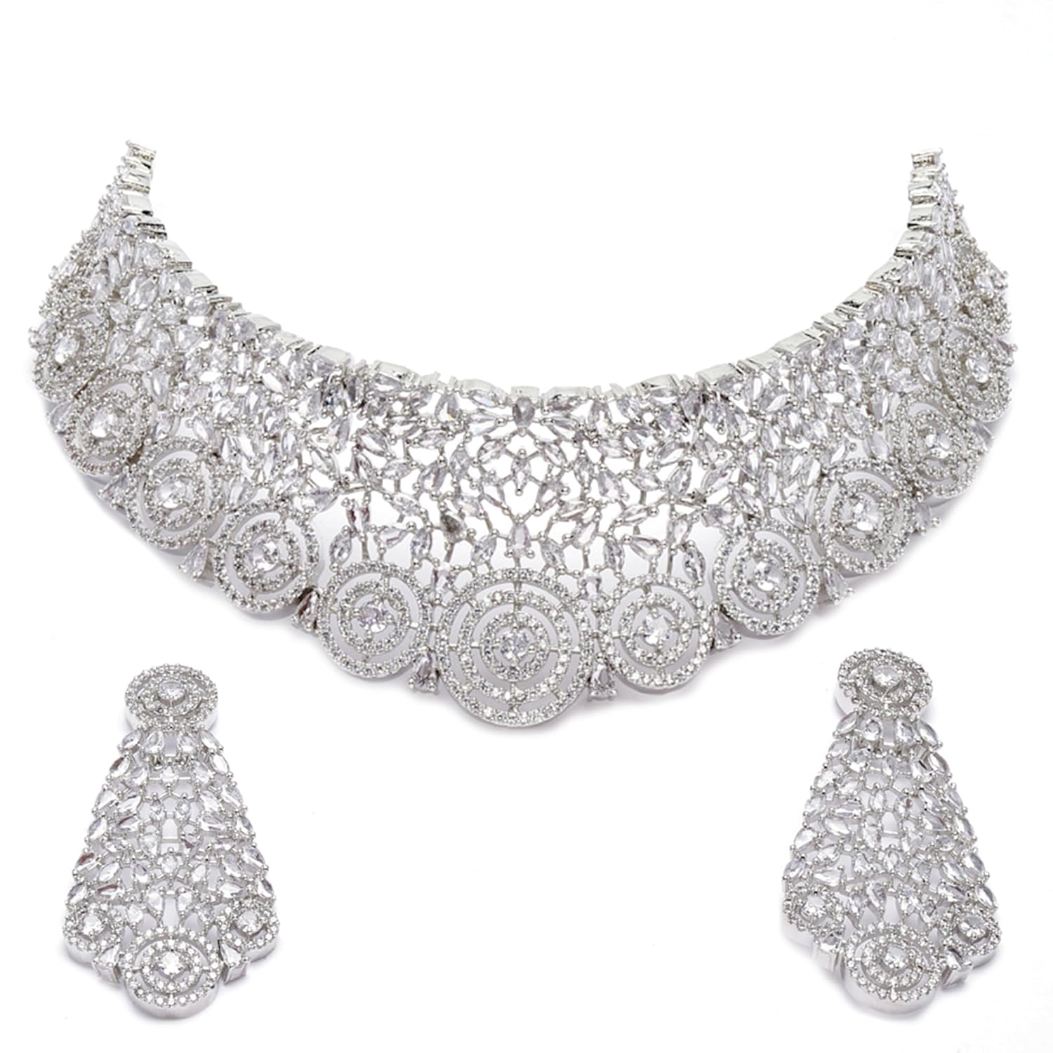 Be the first to review “ZENEME Rhodium-Plated Silver American Diamond Choker Necklace with Earrings Jewellery Set with Girls and Women”